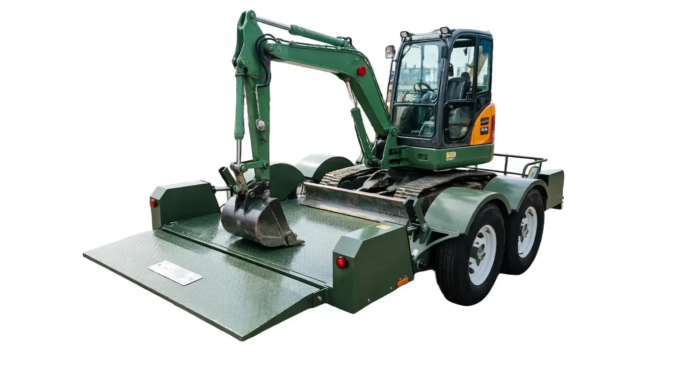 Транспорт на строителни машини: Подходящ за транспортиране на мини багери, мини товарачи (Bobcats) или малки пътни валяци.