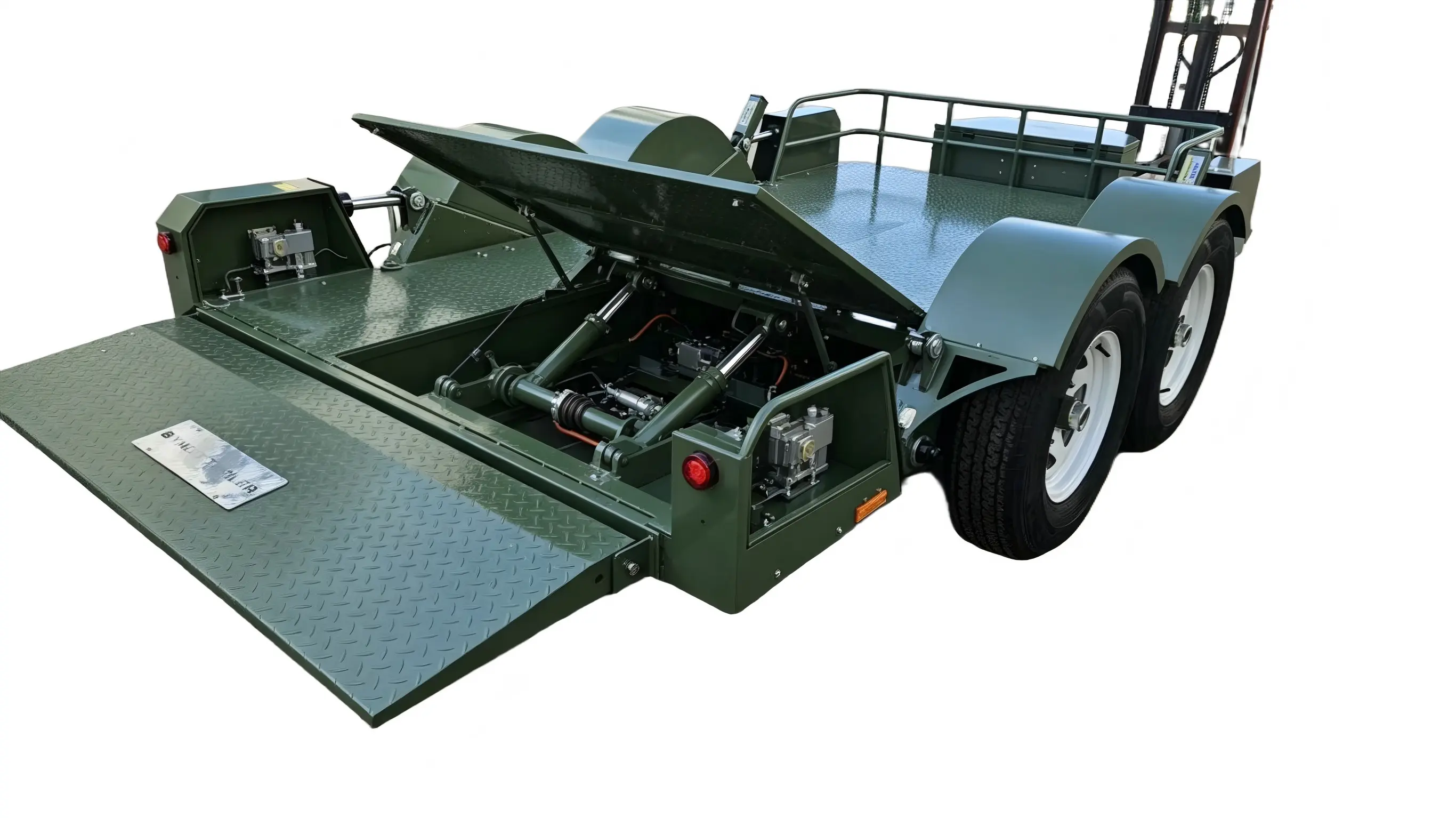 5-тонно двуосно хидравлично повдигащо ремарке е тежкотоварно бордово ремарке, специално проектирано за транспортиране на средно и тежко оборудване, превозни средства и материали. Той интегрира стабилно шаси с две оси и интегрирана хидравлична система за повдигане. Без помощно оборудване като мотокари или стълби, платформата може да се спуска близо до земята, да се повдига и спуска стабилно и да се реализира самостоятелно товарене и разтоварване. Отличаващ се със здрава цялостна структура, надежден товарен капацитет и лесна работа, той се прилага широко при преместване на строителни машини, транспортиране на превозни средства, манипулиране на фабрично оборудване, трансфер на селскостопански машини и други сценарии, служейки като ефективна и практична част от оборудването за транспортиране на 5-тонен тежък товар.