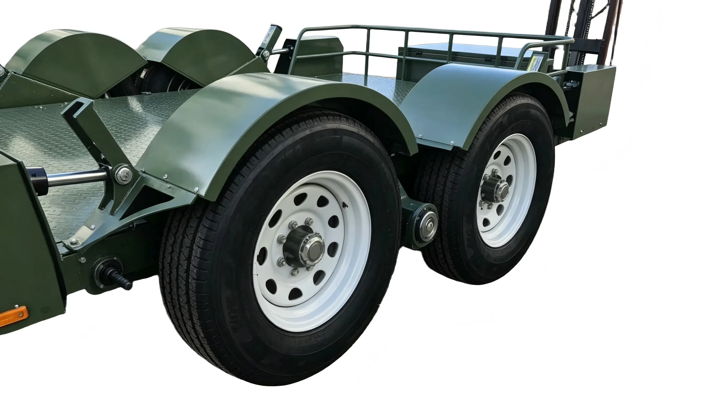 Отличаващо се със симетрично оформление с две оси с тежкотоварни оси, това ремарке осигурява равномерно разпределение на товара. Капацитетът му далеч надхвърля този на подобни модели с една ос, като не показва значителна деформация дори при пълно натоварване от 5 тона. Оборудван с окачване с листови пружини и широки гуми, той предлага отлично поглъщане на удари - осигурявайки стабилно високоскоростно шофиране без люлеене или блъскане, като същевременно се справя лесно с неравен терен и строителни обекти.